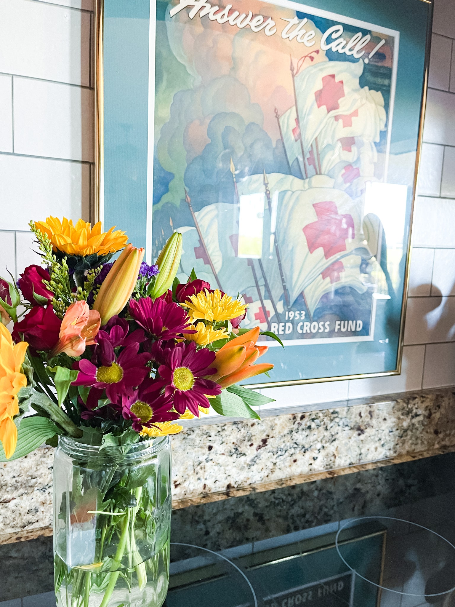 Remember when social media was just pictures of pretty things and the food that we were eating? I know people make fun of that, but darn if I don't miss it! Jason surprised me with some grocery store flowers a couple weeks ago and they couldn't have made me happier. Also, there's just something about those basic blooms that makes them last for so long. They're still looking lovely on our stove and make me smile every time I see them. It's the little things, you know?