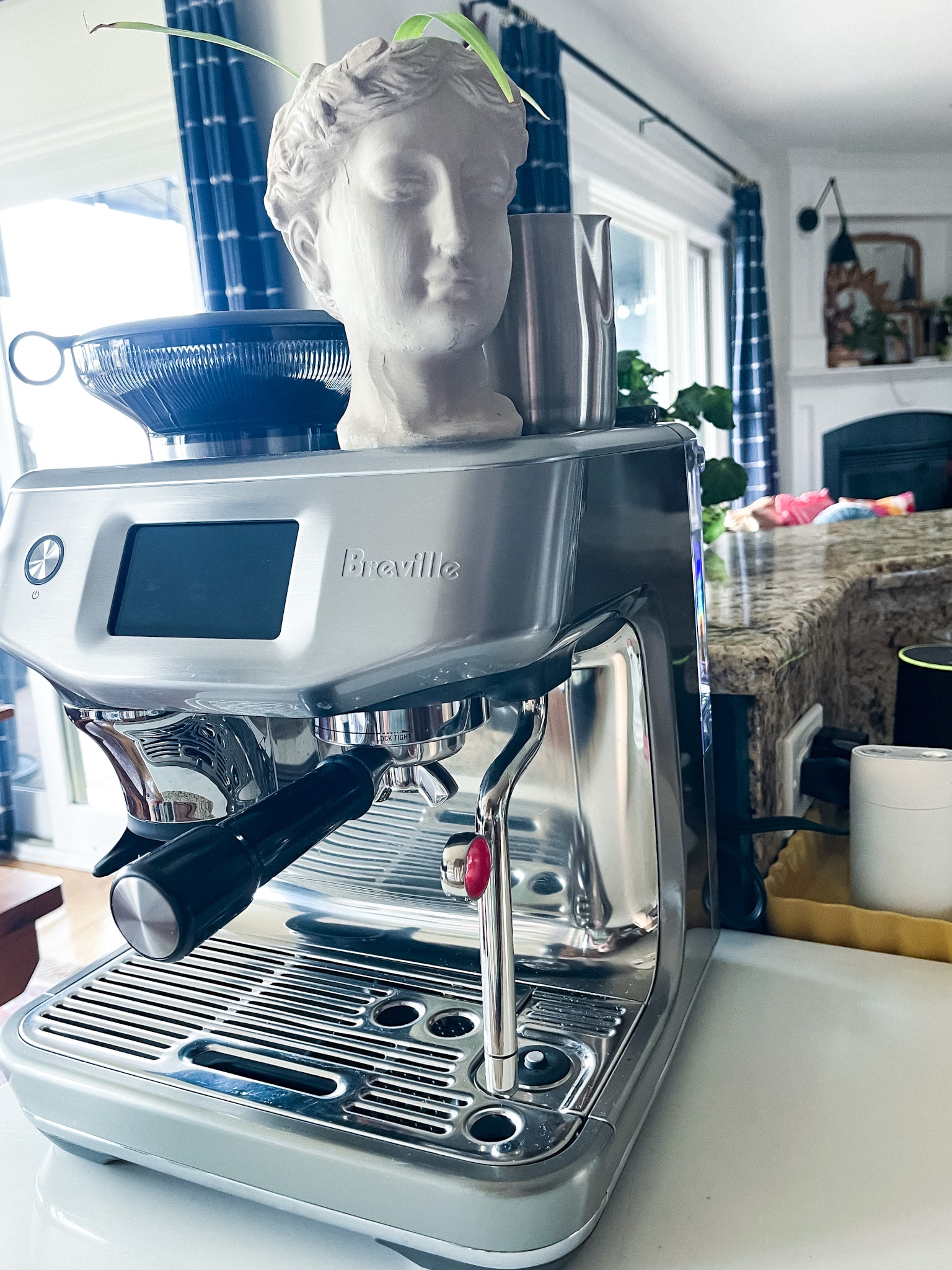 Speaking of coffee...this is my beloved BREVILLE espresso machine and it makes me so happy! When I quit all my bad drinks, I was spending too much moolah on coffees out and about. Something had to give. Thankfully, this beauty was on sale and we brought it home. Want some good news? It's on sale again!! This only happens a couple of times a year, so if you've been thinking of getting one, now is the time. We have the BREVILLE BARISTA TOUCH IMPRESS ESPRESSO MACHINE. It truly is fool proof and is so easy to use and clean. I haven't had a second thought about buying this. We've saved time and money having this machine at home!